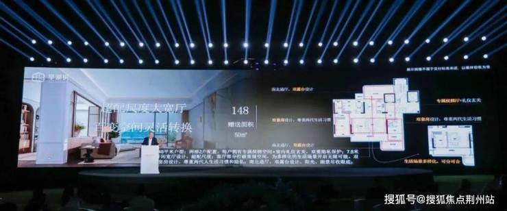 建面约148平户型,约50平超高赠送面积,大宽厅+双露台+双套房设计,百变空间灵活转换。