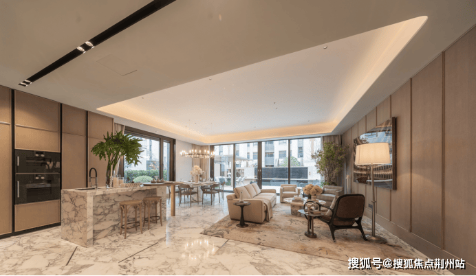 一楼宴请层:消除空间边界,南向花园、海派会客厅、餐厨天地形成大尺度活动公区。罕见多面采光与超大落地观景窗,将感官持续放大,饱览海派繁花时,也让花园风光成为私董会晤、文艺沙龙的绝佳谈资。