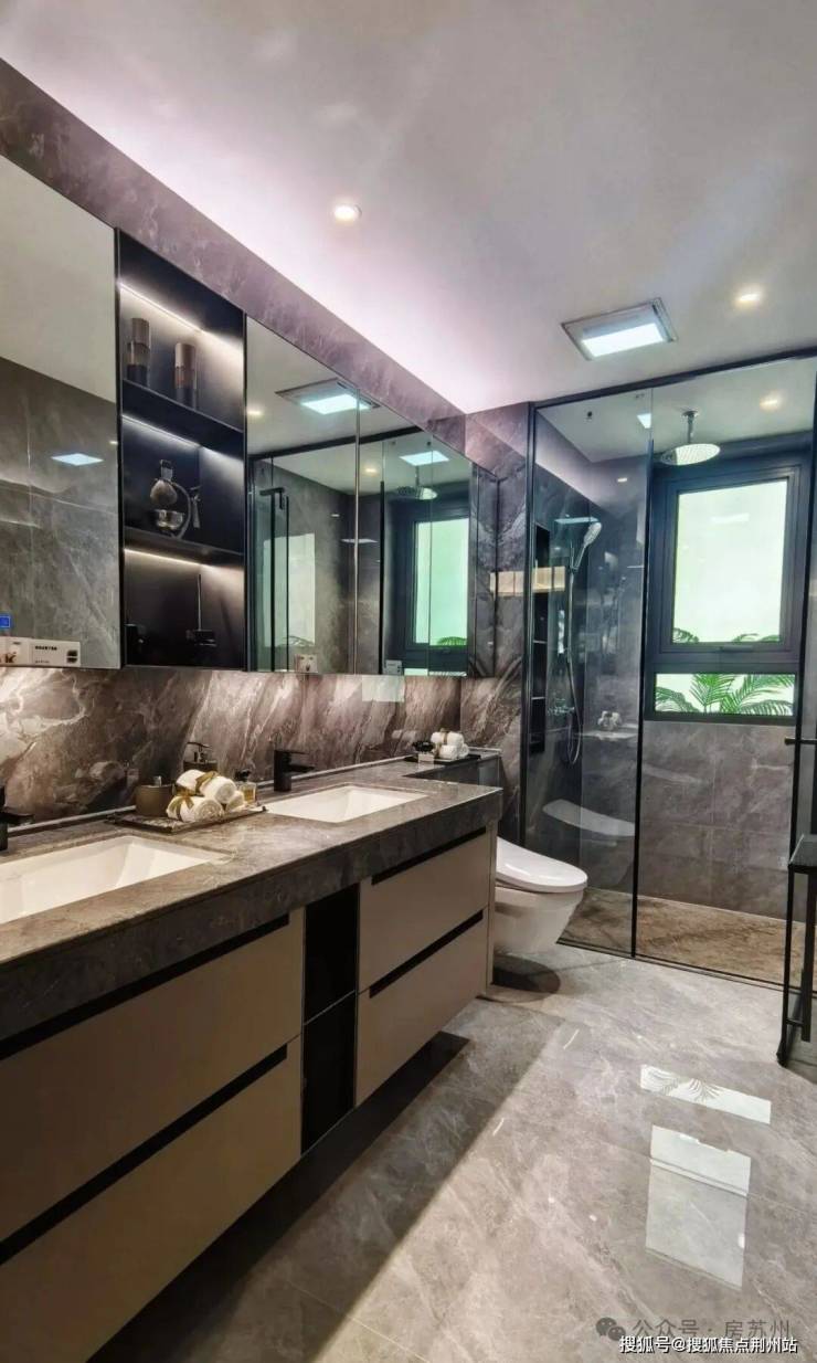 精装交付,标配新风、中央空调、地暖三大件,客厅岩板背景墙也是交付标准。