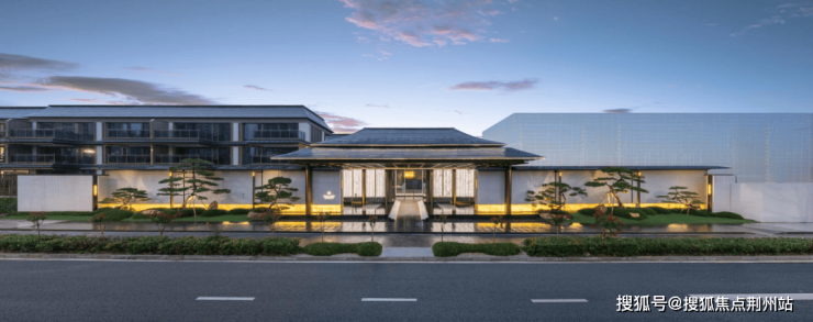 大门入口处的“天目虹桥”汲取了天目盏元素,社区中轴礼序与空间布局再现吴越王城“衣锦城”传统坊巷格局,甚至12扇屏风、景墙雕饰等处均融入了吴越玉佩纹样与现代演绎,使文化和审美在当代生活中得以延续。