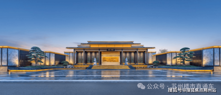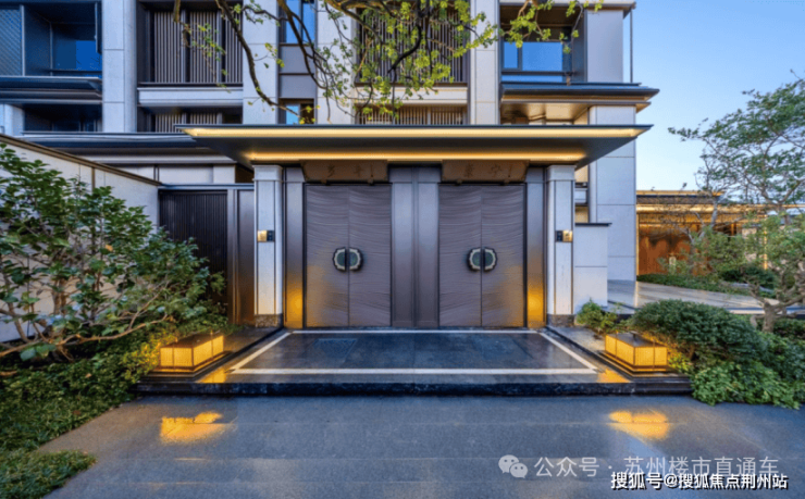 设计逻辑:建发・璟园提炼《仙山楼阁图》建筑元素与苏园经典,形成“飞檐翼角、层级叠退” 韵律,采用 “贝米黄石材 + 宋韵鎏金铝板 + 玻璃幕墙” 组合,檐下金属镂雕海棠祥纹为定制打造,价值不菲。
