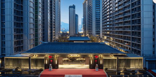 从宽约58.8米、高约11米的王府大门开始,归家动线便充斥着东方美学与瓯越文化的底蕴。三进式空间递进,将书瀚阁、瓯海潮踪等文化节点自然融入;打造的约3万方禅境园林,匹配栋栋宽楼距的社区格局,让每栋楼都有充足的阳光和视野;再到以大面铝板立面与唐风挑檐勾勒的现代立面……每一处细节,都不是简单的复制粘贴,而是真正从居住体验、地脉文化出发的用心打磨。