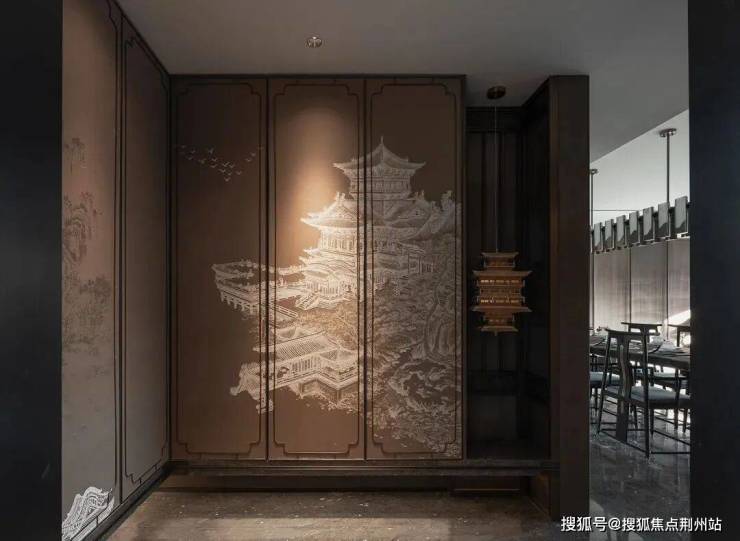 初入玄关,一副清朝九成宫图轴将雅韵的东方艺术气息引入室内。华灯初上,介于方寸之间,尽享乾坤,以此体现传统住宅建筑“藏风纳气”的居住理念。