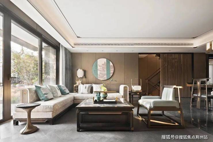 踏入室内,映入眼帘的是大幅飘窗打通室内与户外景致的视觉联结使之更加开敞,和煦日光,将清幽写意娓娓道来。室内设计整体为王府中式设计,不经意间将生活、诗,远方连成一体,召唤每一位归家的人。室内整体采用中式元素融入考究而克制的细节,客厅背景金属网,在里面加上了一副娟丝雕刻的山水画,其渗透出的远山层叠与金属质感的动静相衬,赋予流动的语言,增添不同层次的感官体验,让其形成虚与实的中式意境。