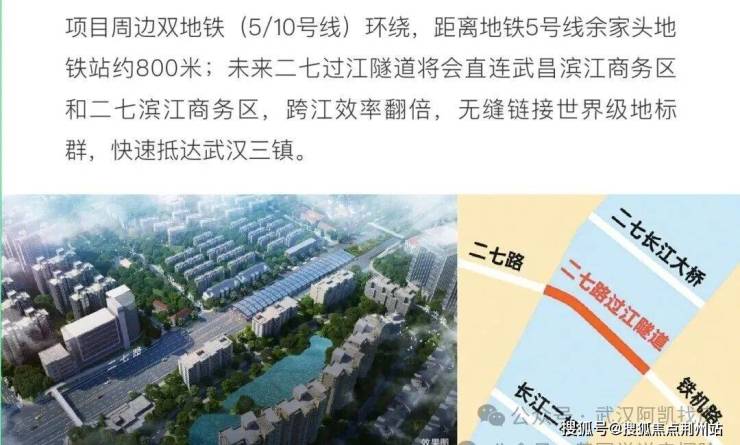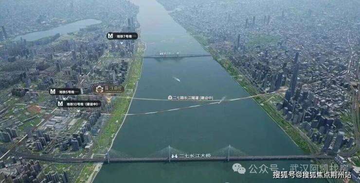 📍 地理位置优越:落子武昌滨江商务区杨园片,与二七滨江商务区隔江相望,长江对岸就是武汉陆家嘴三件套(国华金融中心、泰康金融中心、周大福金融中心)。二七路过江通道正从武汉城建·江南岸旁下穿,对岸出口在周大福金融中心附近,从地理位置和经济定位来看,这条过江隧道就是二七滨江的中轴线,也是连接二七滨江与武昌滨江的价值枢纽,如果修通预计十分钟内就到到周大福中心。