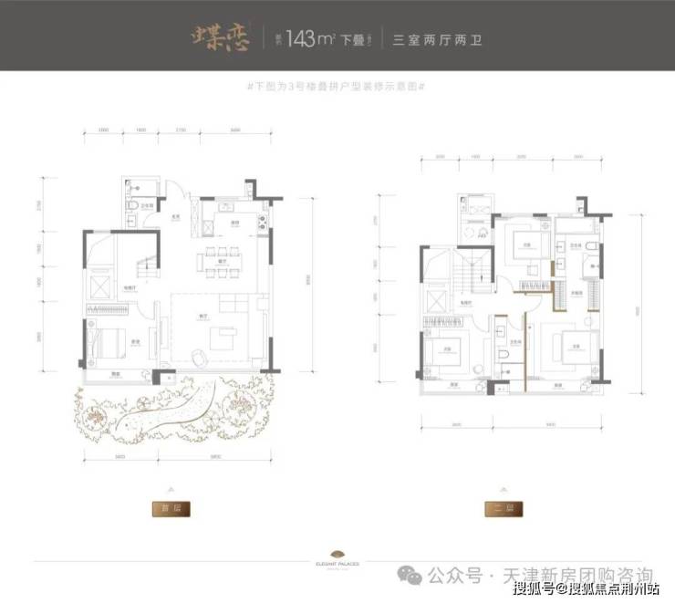 143平,三室两厅两卫,下叠