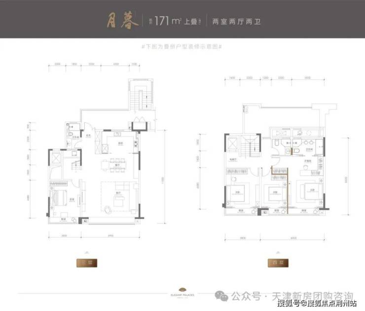 171平,两室两厅两卫 ,上叠