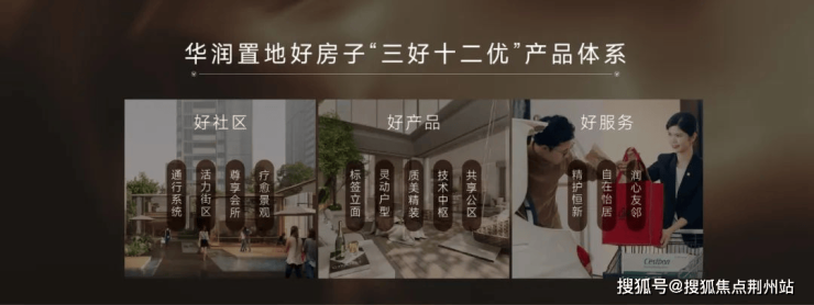 “三好十二优”产品体系,是华润置地好房子战略的重要依托。其目标是响应高品质居住需求,完善标准规范,从而建设安全、舒适、绿色、智慧的“好房子”。在策略层面,分别将“通行系统”、“活力街区”、“尊享会所”、“疗愈景观”、“标签立面”、“灵动户型”、“质美精装”、“技术中枢”、“共享公区”、“精护恒心”、“自在怡居”、“润心有邻”这十二个方面,覆盖到开发、设计、物业及社群服务的全链条。