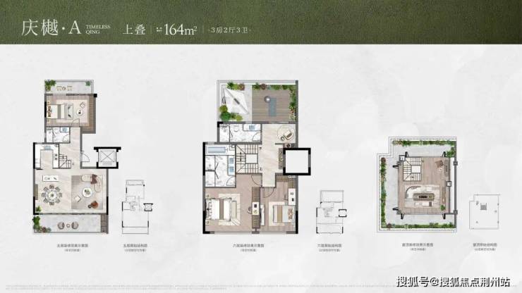 ◆ 上叠(建面约164㎡):空中花园+赠送整层超70㎡屋顶花园