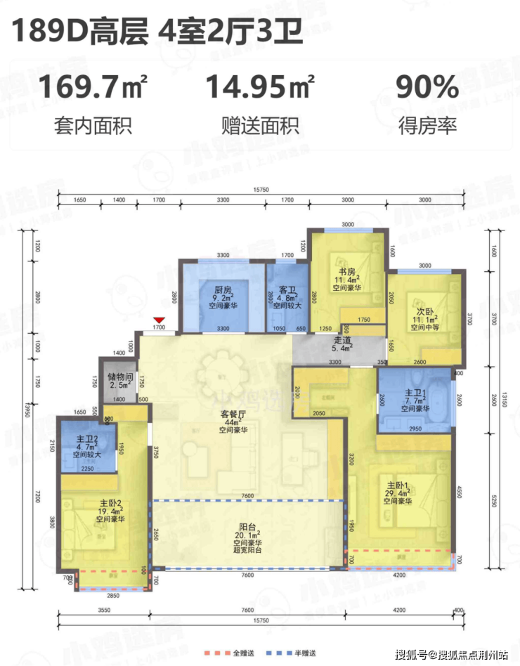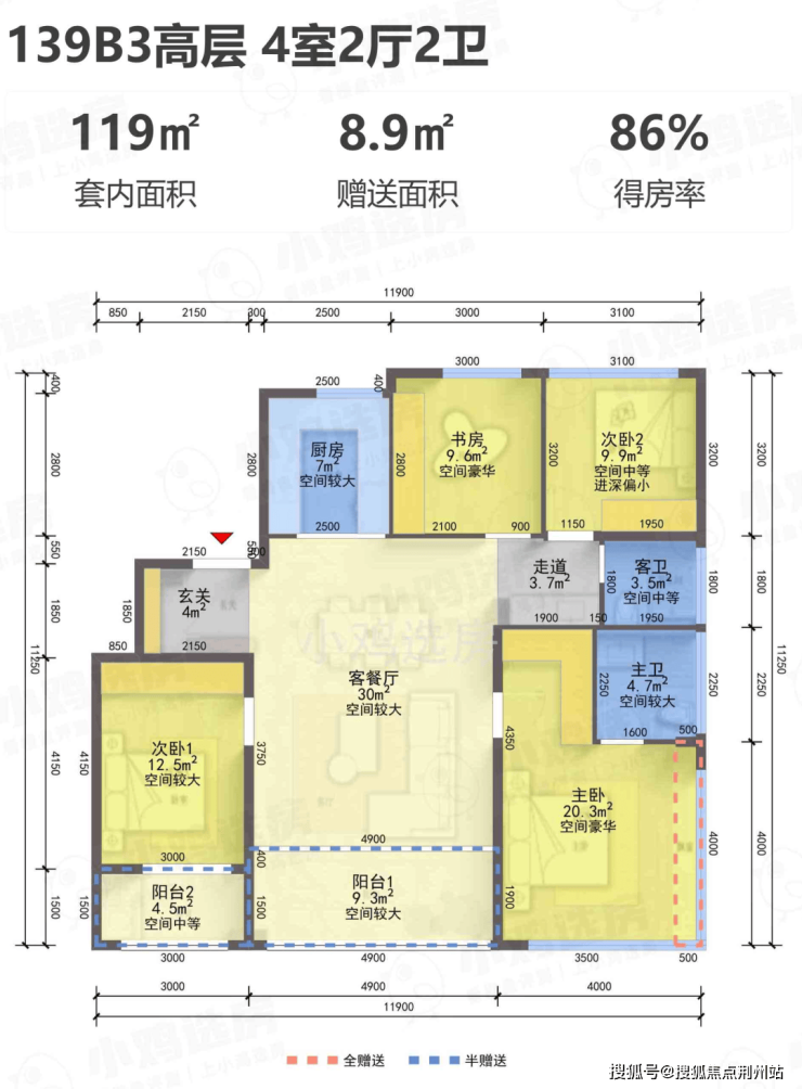 【得 房 率】:含赠送86-90%