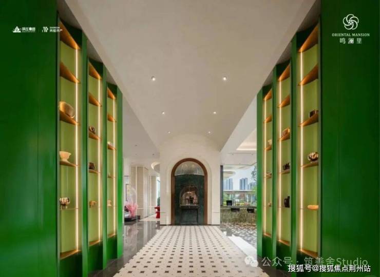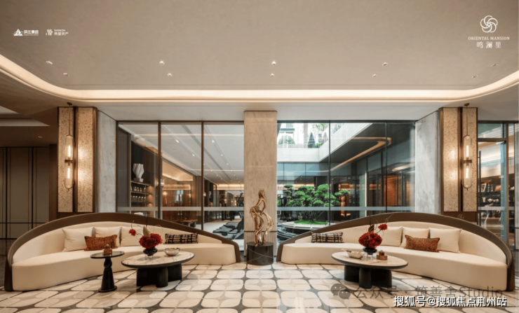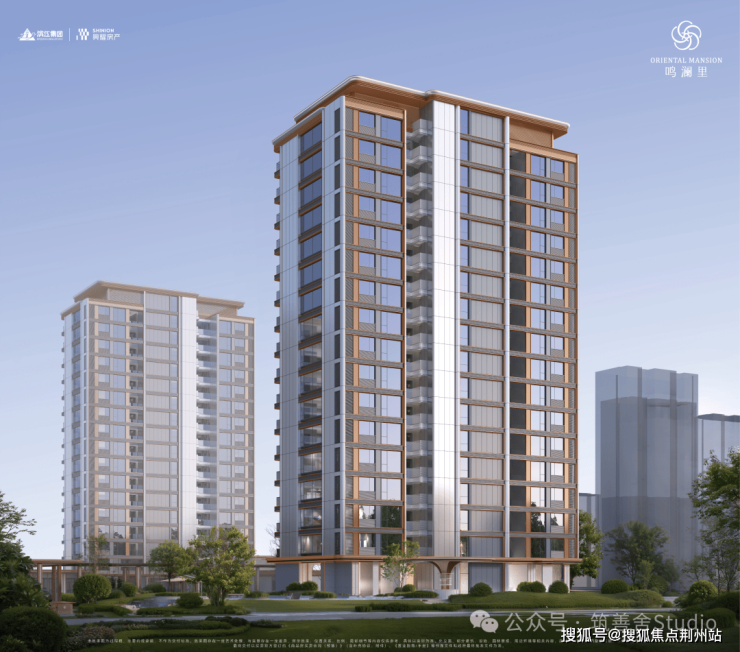鸣澜里的建筑立面设计颇具匠心,四面铝板、造型格栅与大面玻璃幕墙的精妙设计,辅以深灰基座与鎏金窗框的点缀,构筑出沉稳大气的风格,赋予建筑轻盈漂浮的视觉感受。通过打磨建筑单体的圆角弧度,不仅丰富了层次感,更营造出通透开阔的空间意境,引领未来审美新风尚。