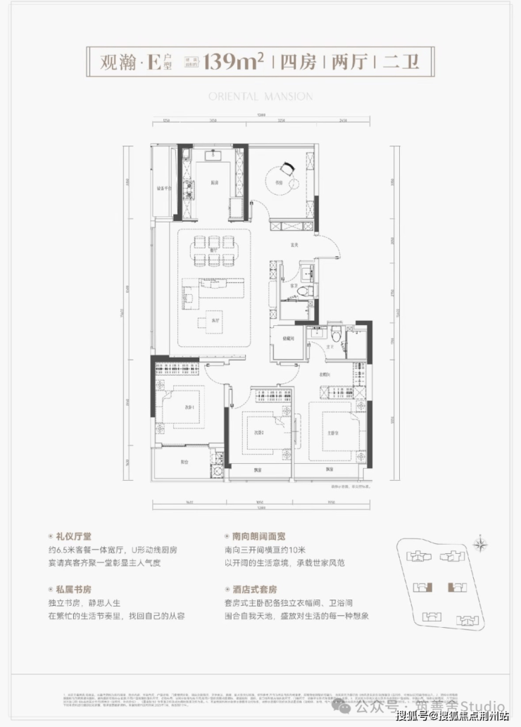 139平米“竖版”户型,得房率高达约93%,空间利用率卓越; 南向三卧设计,采光充沛,完美适配二胎及三代同堂家庭需求; 客厅面积约37平,开阔大气,并配备约2.6平独立储物间,实用性强。