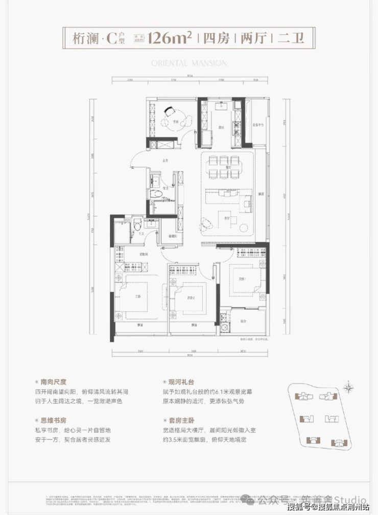 建面约126平米户型,四开间朝南的尊崇布局,主卧配3.5米宽景飘窗,更享6.1米观景宽幕,让您的家成为“运河头排观景席”。运河船只穿行,每一刻都是永恒的风景画卷。