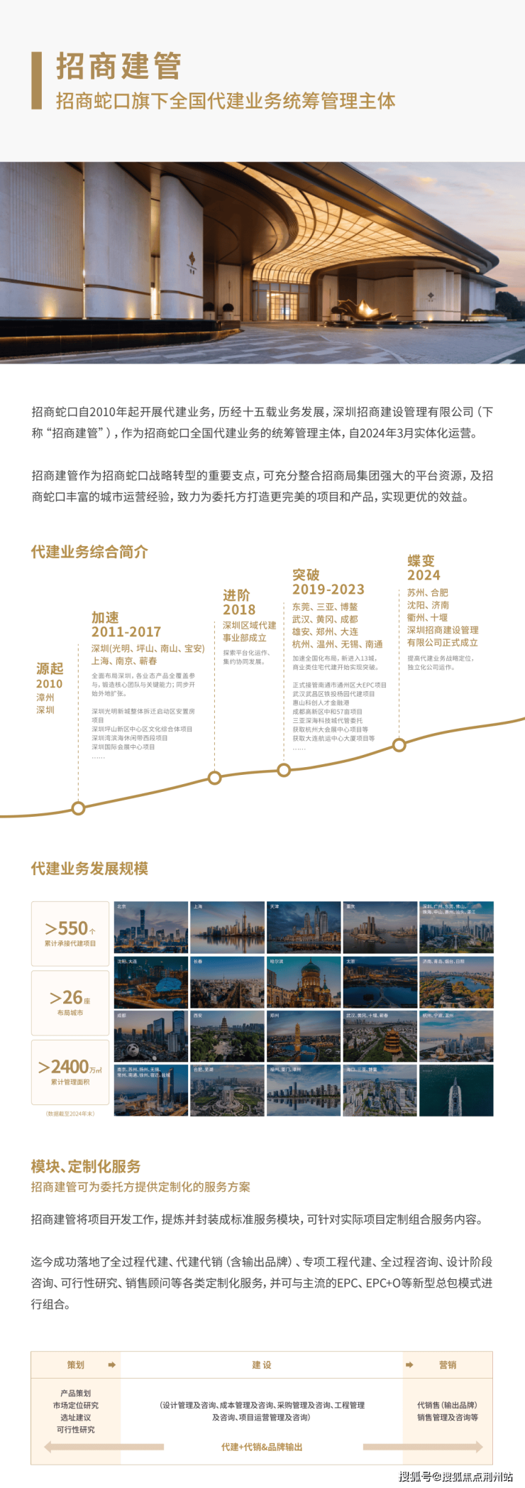 代建模式的核心不是简单的“工程代建”,而是从城市运营的角度解构每个项目,重塑项目高端价值,助力委托方实现长期收益。面对国资平台对“资金安全、资产增值、区域赋能” 的核心诉求,作为受托方,招商建管一直秉承双赢思维,构建了一套从前端研判到后端赋能的全链条精益管理和服务体系。