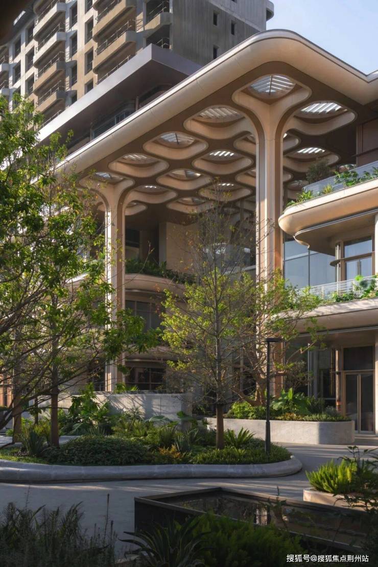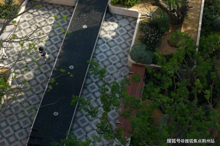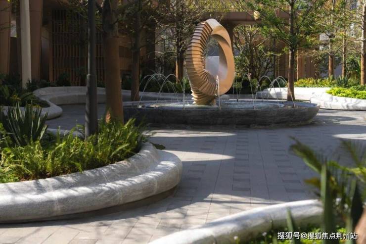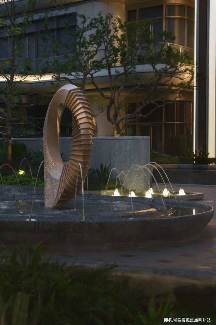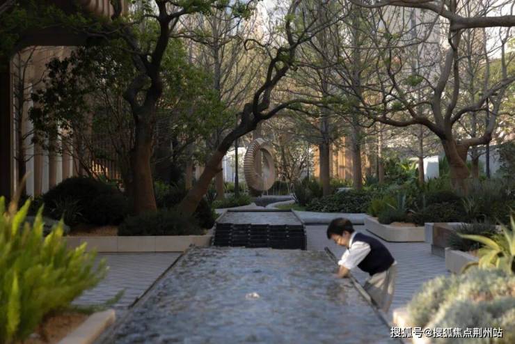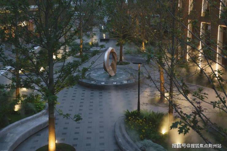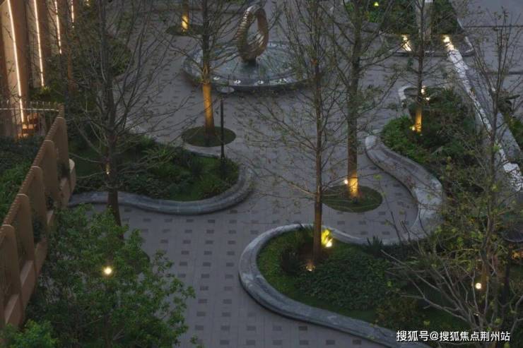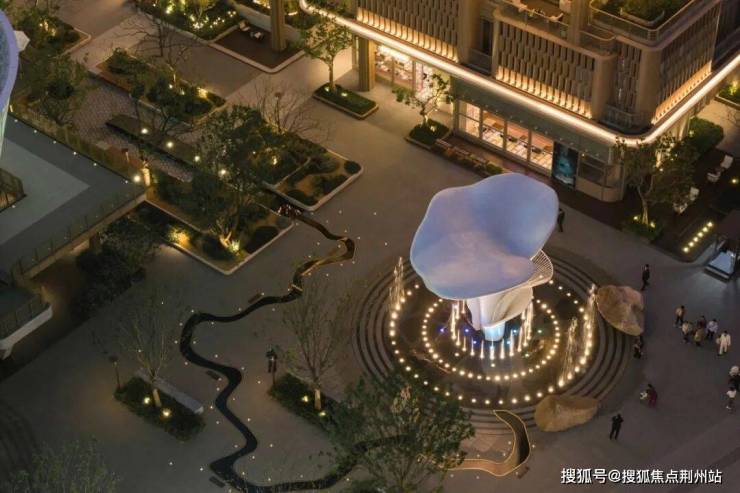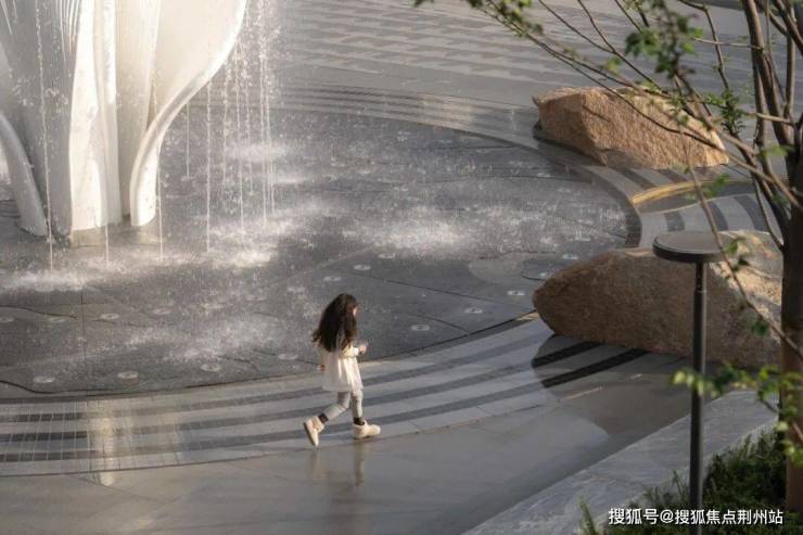场地铺装与水景设计巧妙融汇“万国跑马场”的历史记忆与汉江水脉的流动形态,文脉、水脉共同于脚下绵延。林立的榉树成为城市界面中的点睛之笔,令艺术与自然在交错间对话,最终淬炼为场地独特的文化符号。理想之地的“开场白”,既有对昭示功能的满足,更是一场面向城市的、关于武汉在地文化的超维表达,以无可替代的文化魅力,为居者打开了一个梦幻的现代住宅公园之门。