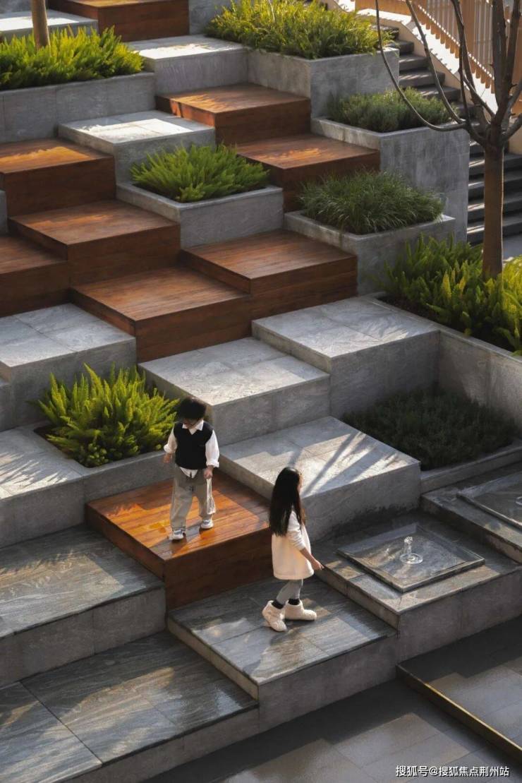 取意在地,以汉江石滩上的石块,叠石为阶,融入竹木、涌泉与乡土植物的生机,于4米高差间构筑出一处兼具在地记忆与趣味的公共空间,自然形成了承载全龄活动的社交舞台。