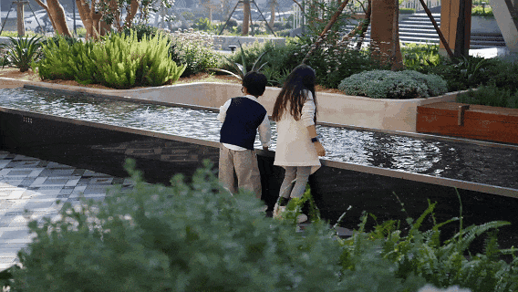 礁岛成为了孩子们自由探索的天然游乐场,也是大人们回味时光、邂逅交流的邻里会客厅,超越其观赏价值,成为一个能激发社区持续互动、凝聚归属感与人文温度的核心场所,将为理想之地持续带来生长活力。