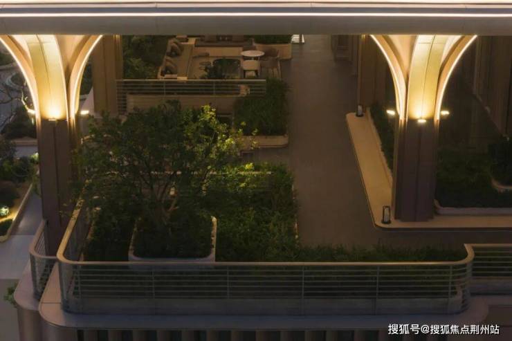 廊上游走,是穿梭于林端的运动休闲带,经典的海派拱券穹顶、暗金色的金属细节与点缀的灯光,共同营造出奢华而温馨的归家仪式感;廊下静驻,则可于光影斑驳中办公、读书、发呆,感受生活漫漫,让每位居者都能在清风树影中,真切触摸到“岁月静好”的理想生活。