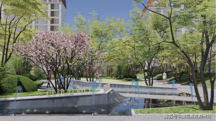 社区内部园林面积约3.5万㎡,绿化率高达40%,纵观青岛楼市,这个高绿化率确实难得一见。园林整体采用曲折而自由的布局,以对角线形式对各区域进行划分,各区域之间以景墙相隔,每个区域内植被、花卉组合、景观小品皆不相同,形成各具特色的景观组团,给人以“耳目皆新”的赏玩体验;相邻的区域以景观廊架和特色汀步连通,使各个区域景色相互渗透,隔而不绝。