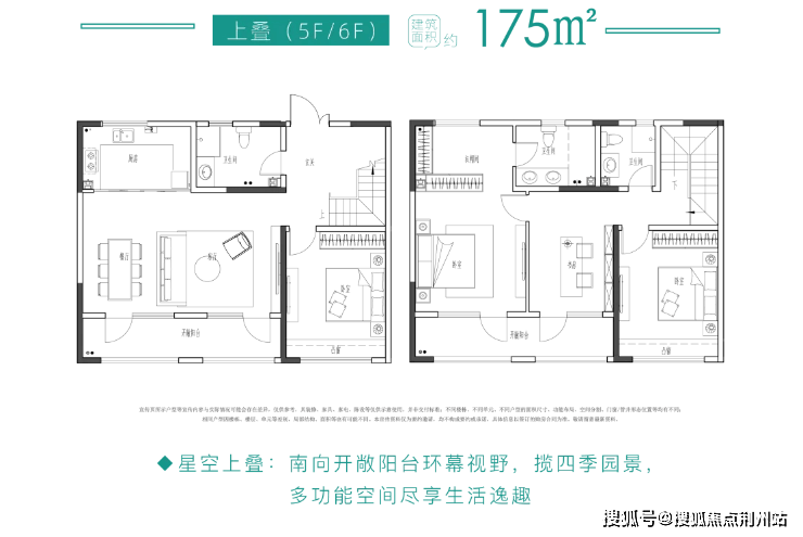 最后,再看青特•云境叠拼的产品细节。户型面积约175㎡。星光上叠,多一层观星赏月空间,藏于天地之间;亲景下叠,独立户外绿地纳四时风光,多一重附加空间,给生活多点安排;宽幕平层,五面南向采光敞阔豪庭,乐享幸福团圆生活。