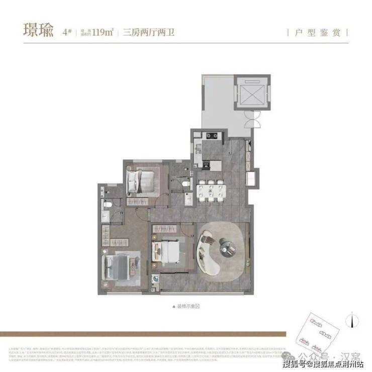 119㎡三室两厅两卫(3 梯 4 户中间户)