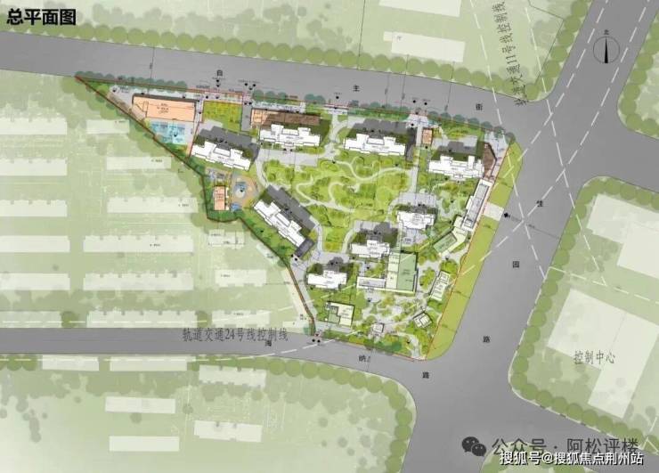 从平面图来,B地块形状不规则。北侧、东侧、南侧均为道路,西侧为现状住宅。8栋住宅呈现围合式布局,形成了比较集中的园林空间。即将首开的2、3号楼位于社区东南部,南看商业街区,西北可看社区中央园林。