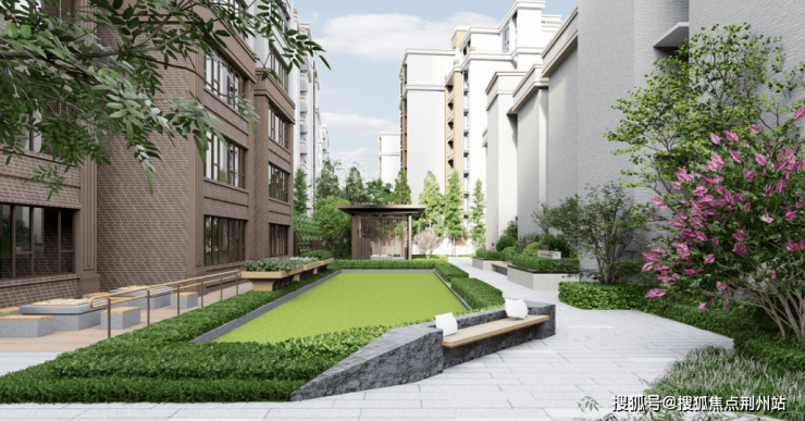 目前,云湖明庐在小区入口处已建成一座口袋公园,小而美的设计,让业主的归家之路变得极具仪式感。项目建成后,主入口将引入跌水景观,为繁华老城区构建一处静心居所。