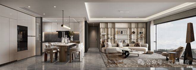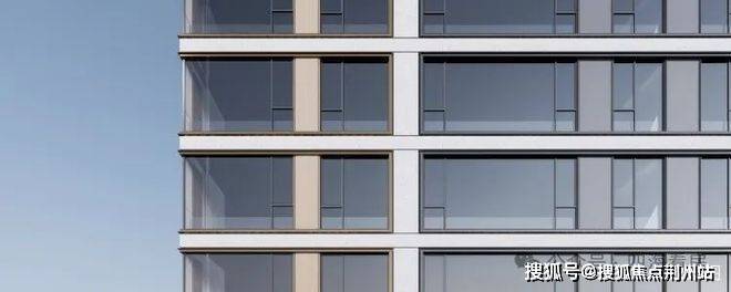 ②比肩一线城市豪宅的公建化立面形象:类公建现代都市颜大面积玻璃幕,搭配金属铝板和真石漆涂料,使得整体建筑大气简洁与线条流畅,建筑现代都市感气息浓郁。