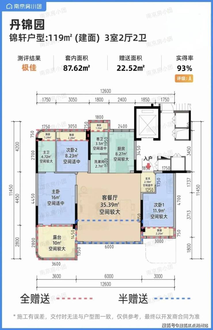 由于丹锦园是第四代住宅,奇数层和偶数层的户型有差别,所以建面约119平米户型的空间使用率,整体在94%-97%,接近100%。