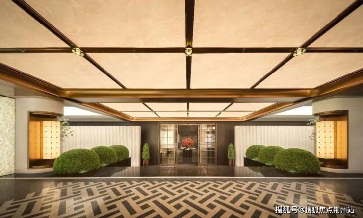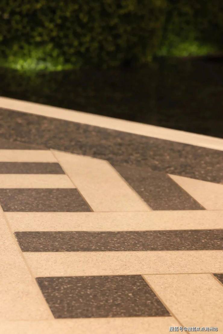 更绝的是车马厅和入户大堂前用不同色彩及材质的无机磨石做拼花造型,造价夸张到要1500元/㎡。