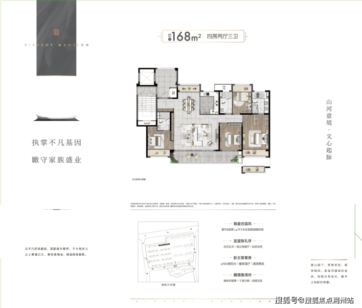 沿袭中式经典品味,将传统文化精粹与当代居住理念融合。以“五进归家韵味,呈礼三院生活”,再现门第尊荣