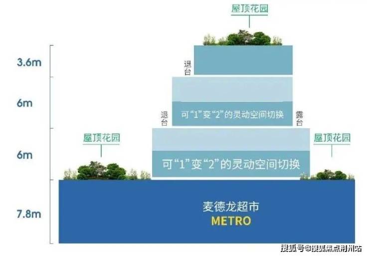 M·环球中心仅5栋建面约340-1747㎡内环稀缺商墅,商墅层高都是约6+6+3.6m的形式,首创3变5,空间随心变化。