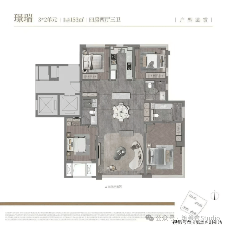 近百米中轴对景与楼间距,所有楼栋南北朝向,坐拥开阔视野。即将首开的3、4号楼,提供建面约119平三房及139平、153-155平、163-165平四房选择,均享全明入户与独立电梯前室。层高约3.05米至3.15米,作为准四代产品,得房率高达97%-106%,远超国家标准,定义“好房子”新标杆。
