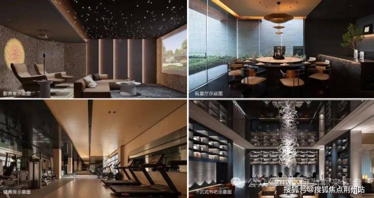 该项目也打造下沉式会所,包含私宴厅、影音室、艺术书吧、健身房等空间。整体面南向立面窗墙比70%,交付时阳台统一封窗户,保障整体立面的统一性。