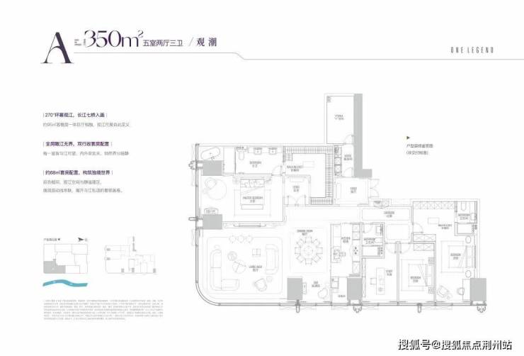建面约350㎡户型,270°全景舱揽江,环幕视野下,感受到的不是“窗外风景”,而是与江同席的在场感——江水是背景,亦是气场。