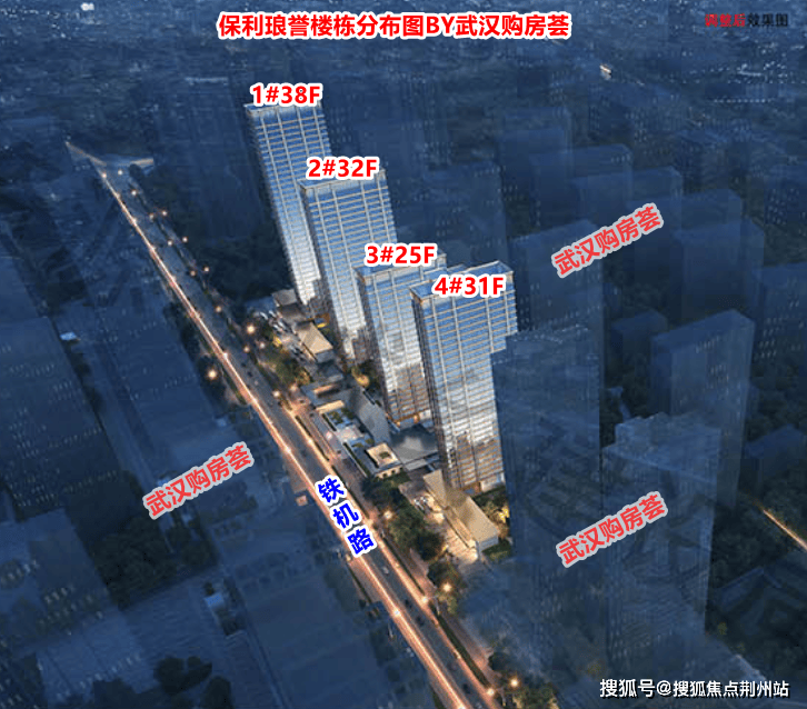 保利琅誉即保利城四期-B区北片项目,共四栋住宅楼,其中1#38F,2#32F,3#25F,4#31F,2、3、4#都有架空层。