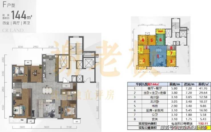 132平洋房,四室两厅三卫,预计清水交付,(预计)总价260-280万。