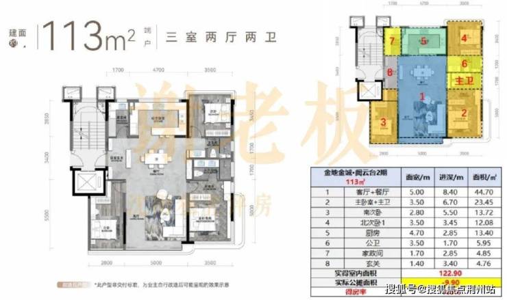 改造后得房率能达到109%,实得室内面积约122.90㎡,空间利用率大幅提升。客厅+餐厅面宽5.0米,进深8.4米,面积约44.70㎡,日常活动空间充足,适合偏爱精装交付、想省去装修麻烦的年轻家庭。