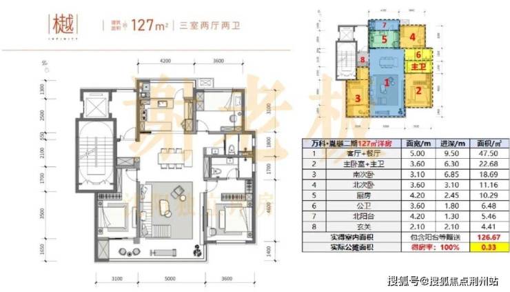 得房率近乎100%,实得室内面积约126.67㎡,再加上万科的精装品质和物业口碑,适合追求居住品质的改善家庭。