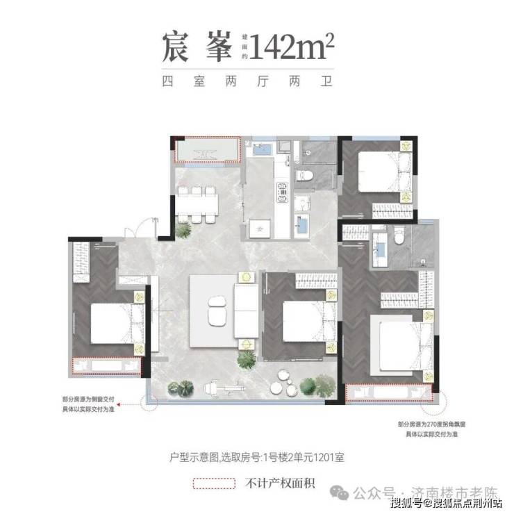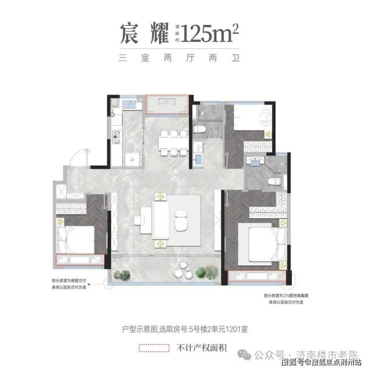 小高层【127平】3+1户型,可改四室,该户型赠送设备平台约2.5米