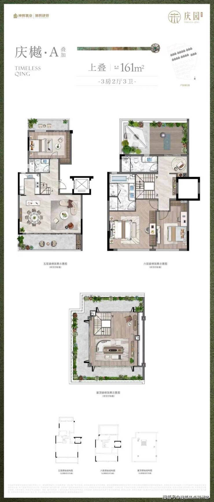 叠加(上叠)建面约161㎡,3房2厅3卫: