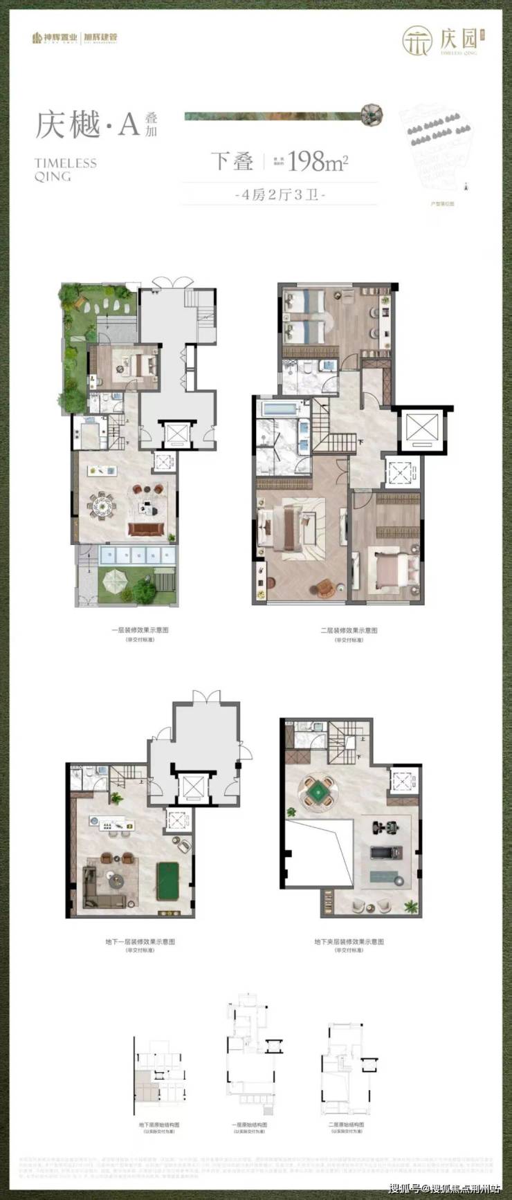 叠加(下叠)建面约198㎡,4房2厅3卫:
