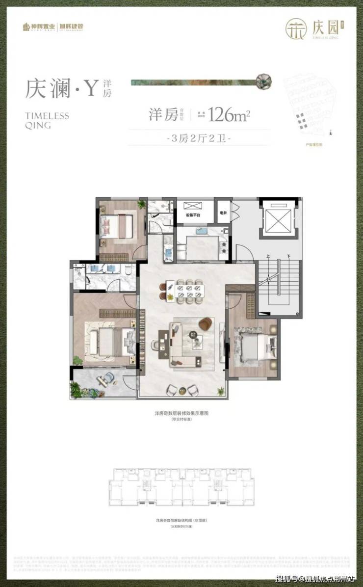 洋房建面约126㎡,3房2厅2卫: