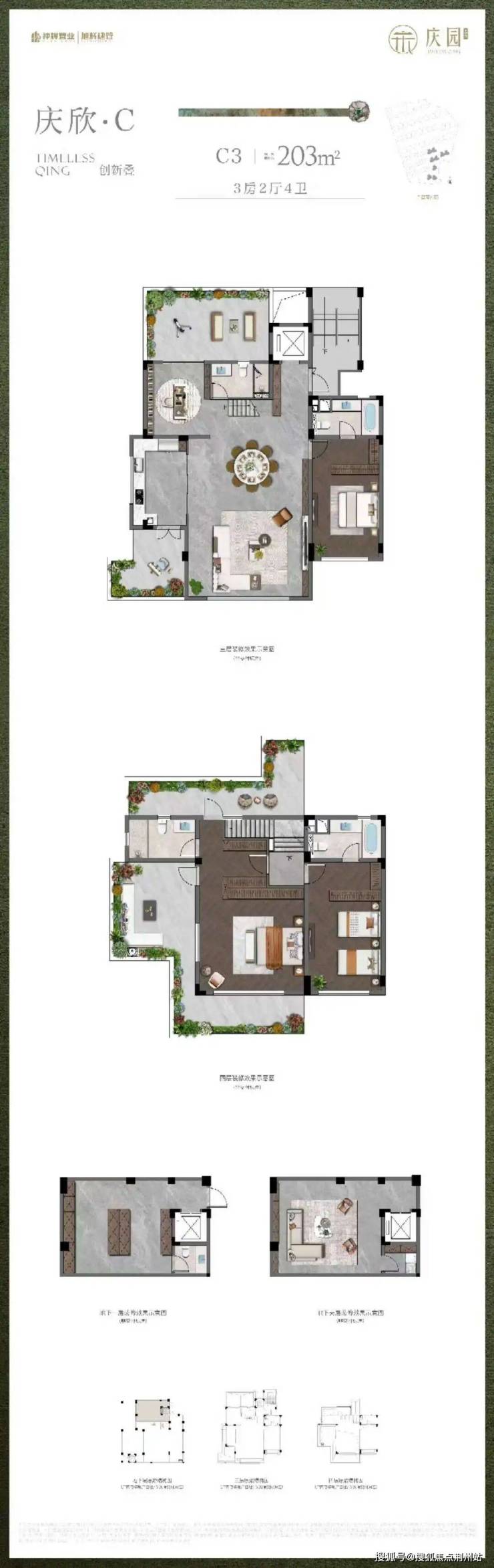 创新叠C3建面约203㎡,3房2厅4卫: