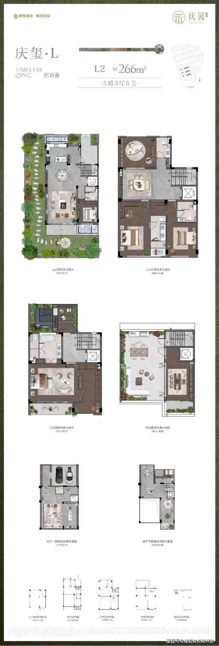 联排建面约266㎡,5房3厅5卫: