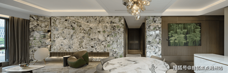 建面约310方的大平层、WJID 维几设计总设计师黄全先生执笔的室内精装、奢石与国际品牌云集的高品质精装和约65㎡的转角大客厅、极致的细节和工艺,让城西的富人终于不再艳羡钱江新城。首先来到这个超大的会客空间,你很难不被这一整面的冷翡翠奢石背景墙吸引。