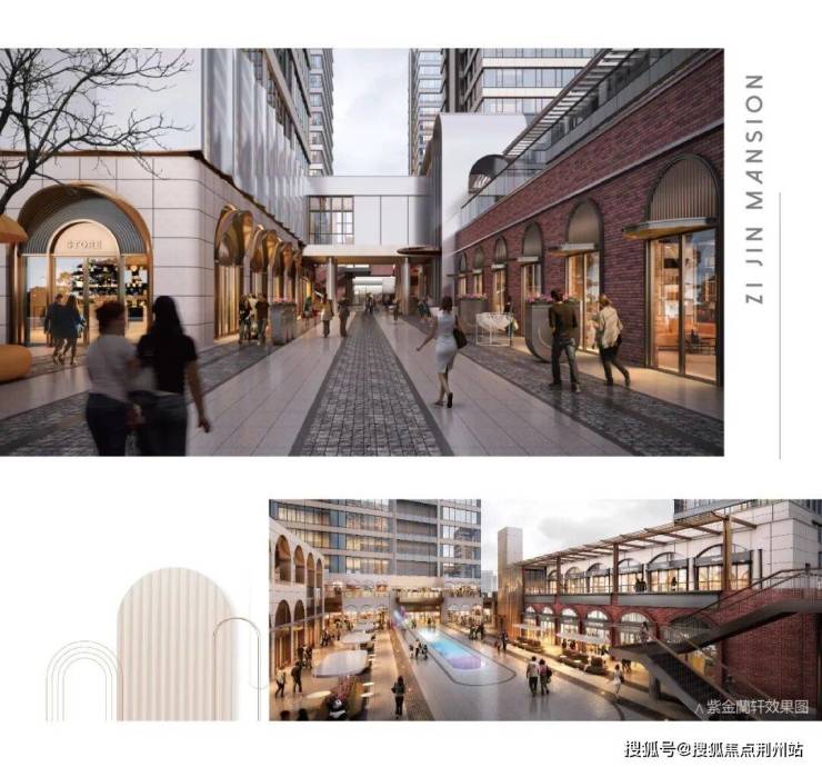 约11万方规划区域,打造平层社区、时尚街区、商务办公、休闲娱乐等多元业态于一体的综合性社区,并以街区漫步的呈现方式,延续紫金港的慢节奏生活。拱券形式的装饰与极简隐框玻璃幕墙的风格对撞,搭配出兼具当代力量和摩登复古的艺术性美感。