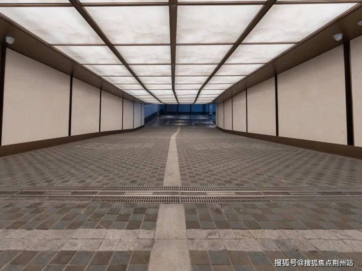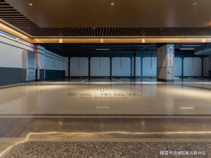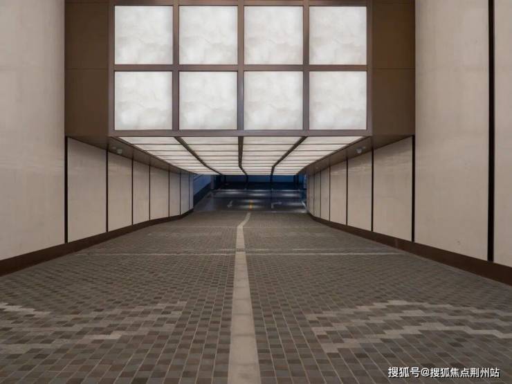 申陇院地库的行车道采用3米长超大规格蜂窝铝板与铝方通格栅,可持久保新,灯带藏在格栅吊顶中间,精致到细节之处,提升尊崇感。