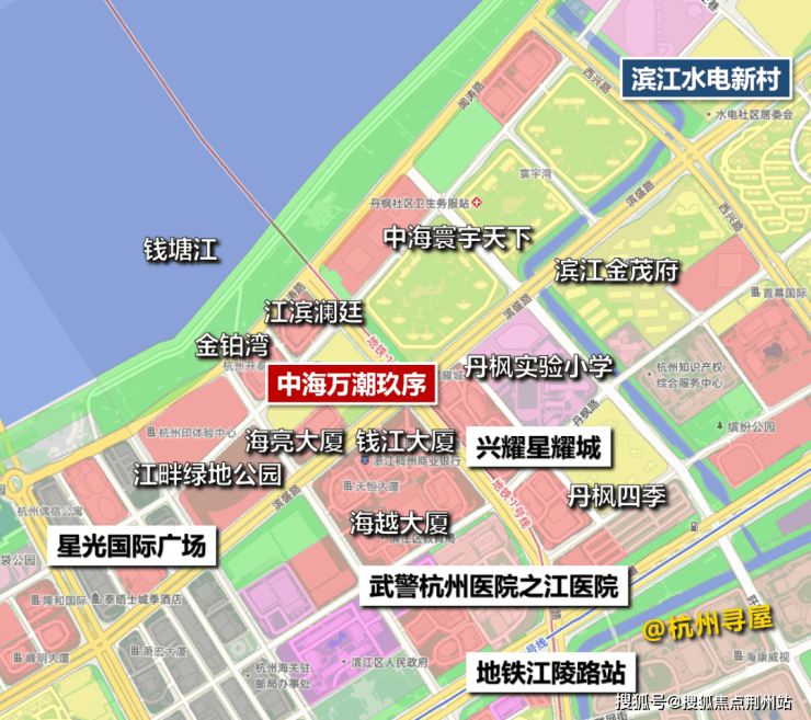 从区位看,万潮玖序处于滨江区府板块,位于杭州印东侧500米处,距离钱塘江200多米,不过江景视野受到一定遮挡,并非一线江景,但地段还是非常不错的。