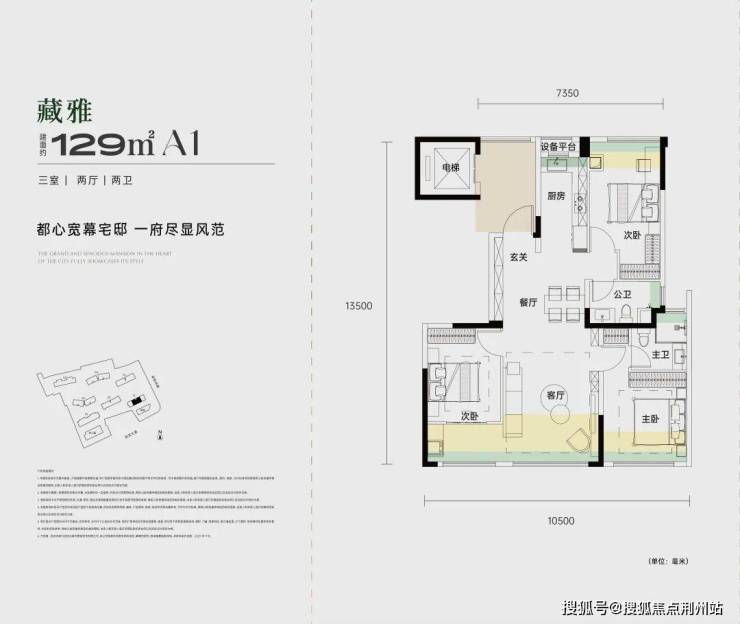 承宁府首开推出1#楼,仅规划1个单元,为21层纯板楼,仅打造建面约115㎡和129㎡两种户型,均为三房两厅两卫设计。